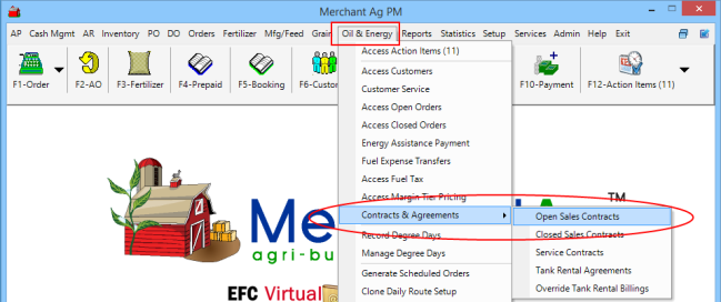 Use a Sales Contract to offer Fuel Items to Customers at a specific price. Navigate to Oil & Energy Sales Contracts by accessing Oil & Energy > Contracts & Agreements > Open Sales Contracts.