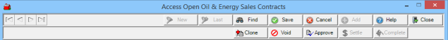 Search for an existing Oil & Energy Sales Contract using the Find button. See Select Oil & Energy Sales Contract for more information or use one, multiple or all of the available active fields. Learn more about the function buttons here.