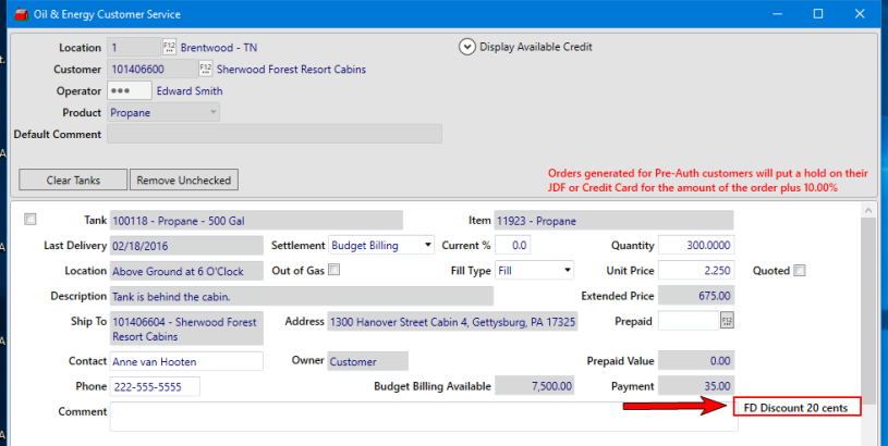 Access Customer Service and all Tanks with an associated Fuel Discount will include the name of the Fuel Discount.