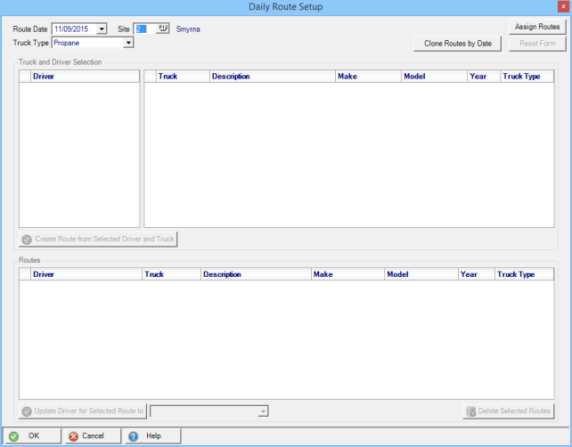 - Clear the Truck and Drive Selection grid by clicking Reset Form.