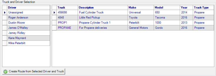 Set a Daily Delivery Route for Oil & Energy Orders by selecting a driver and vehicle.