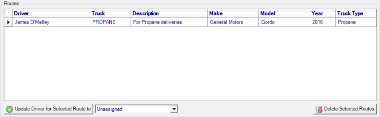 Click to update the driver assigned to a selected route by clicking on the route and using the drop down menu to choose another driver.