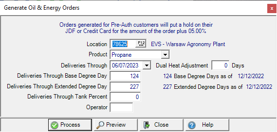 Use Generate Scheduled Orders to create Oil & Energy orders for automatic delivery. Orders are pre-authorized based on the default settlement type selected on the Tank.