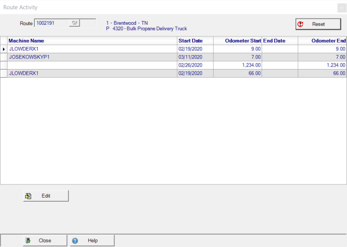 Click the Reset button ro remove the current details to select another Route.