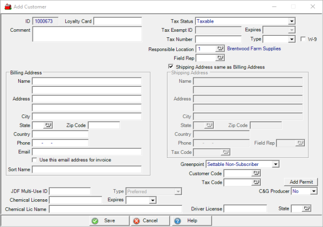 If the customer is a Commodity & Grain Merchandising customer, select Dealer or Grower from the drop down menu available in the C&G Producer field. Retain the default of No if not a C&G customer.