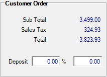 Enter a Customer deposit for the order which is recorded as a Prepaid. If a minimum percentage for deposit has been set, a deposit of that amount will be required.