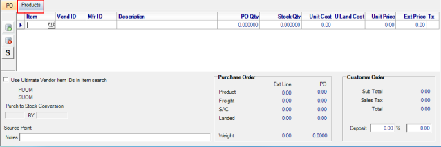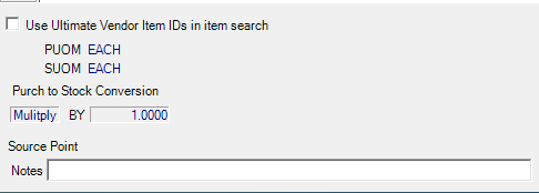 Select to add a line item to the grid. Click into the Item ID field and enter an Item ID or select F12 to search. Click the Use Ultimate Vendor Item IDs in item search to limit any item search to items that match the Ultimate Vendor ID supplied in the Vendor section.
