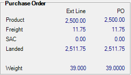 Click on each item to view totals for the Ext Line column and for the Purchase Order section of the Special Order.