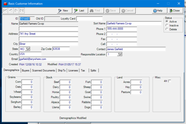 Use the Demographics tab to add or edit Customer Demographics in this informational only section.