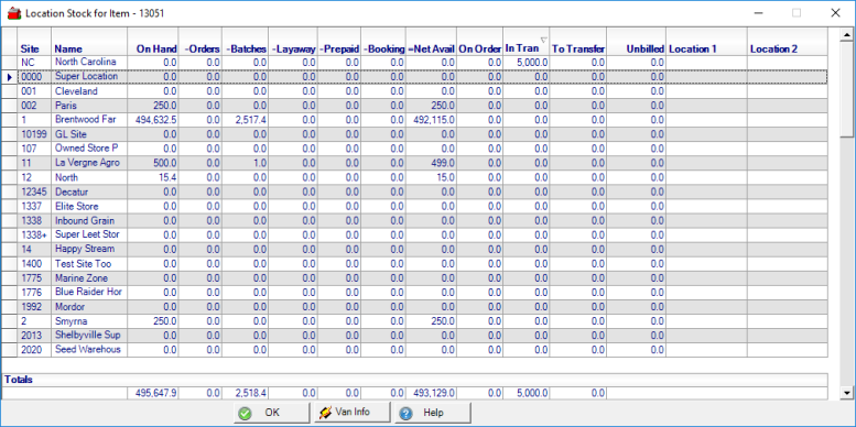 - In Transit- Any quantity of the item being transferred to the Location.