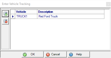 - Select to choose the vehicles that will be used in association with this order, like a fertilizer spreader. The Enter Vehicle Tracking window opens.
