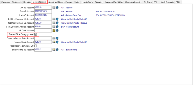 If tracking Prepaid transactions by Item Category is needed by using a specific General Ledger account, select the parameter Prepaid GL at Category Level on the General Ledger tab. Selecting this parameter prompts for a General Ledger account on the Item Category in Merchant Ag PM > Setup > Access Categories.