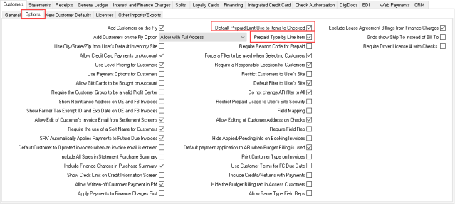• Default Prepaid Limit Use to Items to Checked