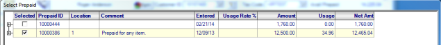 Click into the Selected column to choose the Prepaid to be used to settle the Order or Batch.