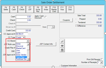 Click the CC Type drop down list and choose the Vender Finance Program. See Setup > Access Vendor Finance Programs about creating new programs.