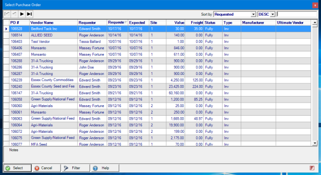 Click on the PO and then the Select button or double click to open the Purchase Order Details screen.