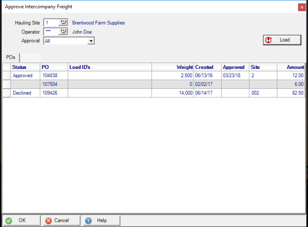 Intercompany Freight is available on Purchase Orders when a selected Site will provide hauling services and transport Items from the Vendor to your location. The Hauling Site will approve and recognize the Intercompany freight charge as Revenue. The Receiving Site will allocate the freight charge based on weight or value during the receiving process for accurate Weighted Average Cost on received Items.