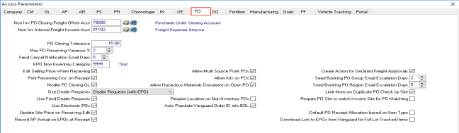 To indicate if an Action Item should be created for declined Intercompany Freight, navigate to the PO tab.