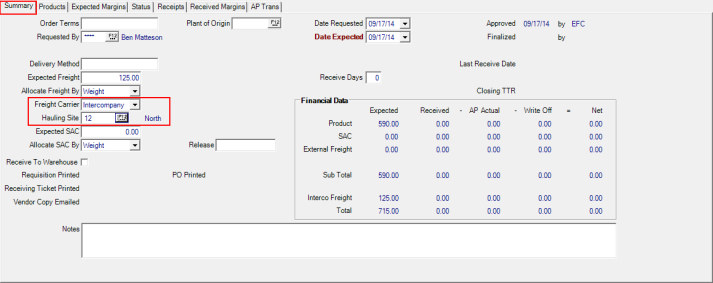 Purchase Orders utilizing Intercompany Freight can not be received until the Freight amount is Approved.