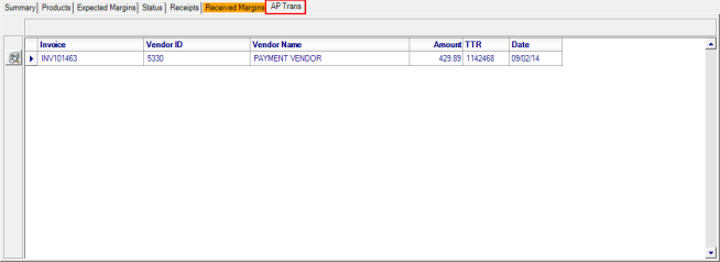 Accounts Payable invoices that have been entered for an Approved PO are listed on the AP Trans tab. Invoices can be entered before Items are received by using the PO Application Status field found in Enter Unpaid in Merchant Ag FIN and selecting Non-Received.