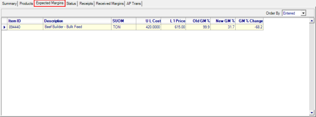 Choose a sort order of the Products grid by using the drop down list in Order By to view Entered, the order the items were entered, or Item ID to sort numerically.