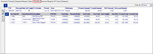 Choose a sort order of the Products grid by using the drop down list in Order By to view Entered, the order the items were entered, or Item ID to sort numerically.