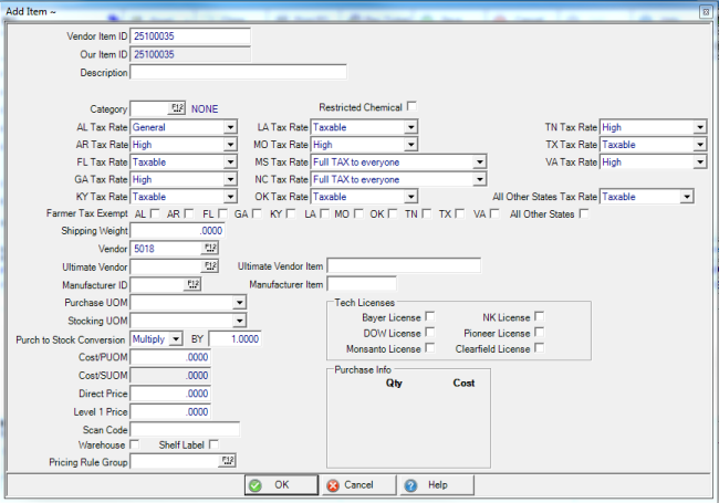 Use the checkboxes to choose the states this item is considered Farmer Tax Exempt.