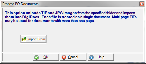 Use this option to import scanned Purchase Orders into DigiDocs.