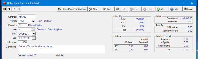 Use the Comment field to add specifics to the Purchase Contract. This field can be used as a filter when creating the Purchase Contract Status report.