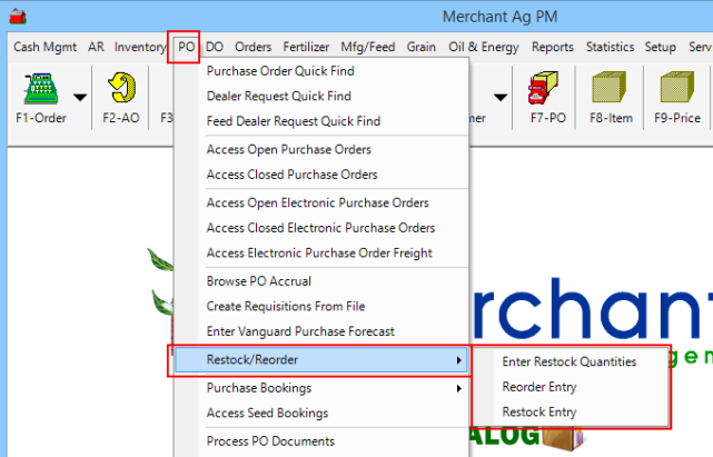 Restock Entry- Use Restock Entry to select Items and create Purchase Orders based on Item Quantity falling below the Minimum Restock Quantity set on Items.
