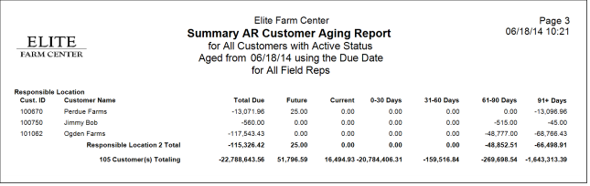 Report Totals- All columns Total Due, Future, Current and the Aging categories are totaled.