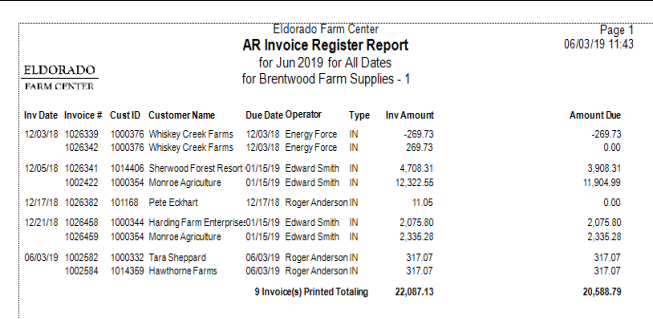 A Report Total includes a count of the Total number of invoices on the report and the totasl of the Inv Amount and Amount Due columns.