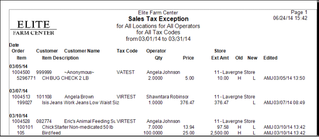 The name of Operator who entered the transaction and changed the Sales Tax flag on the item is included.