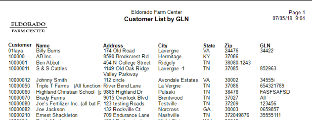 Customer List by GLN