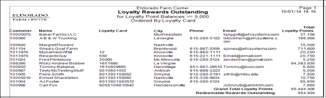 View a list of Customer Accounts with loyalty rewards outstanding.