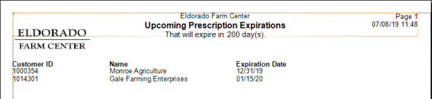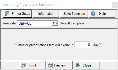 View the list of all customers allowed to purchase items requiring a prescription due to expire in the number of days entered.