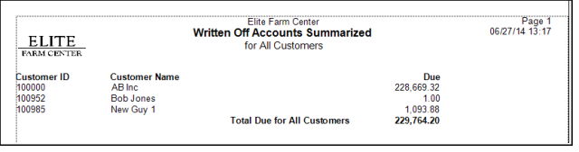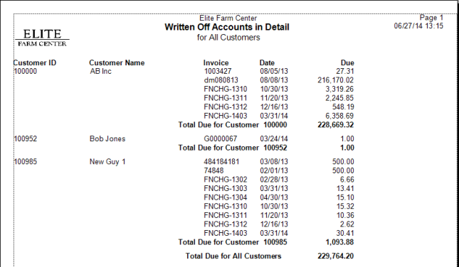 Total Due for all Customers is a Report Total of all bad debt written off.