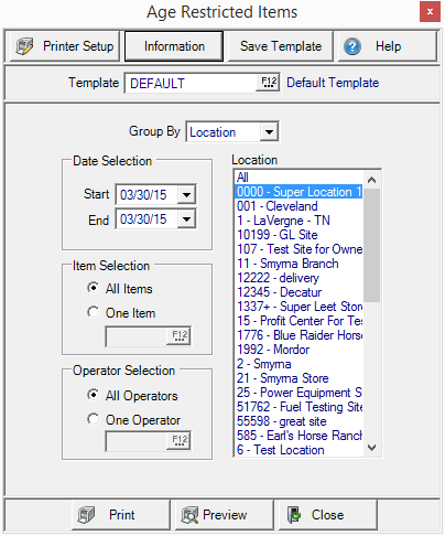 Retain the default of All Operators in Operator Selection or focus on one Operator by selecting One Operator and entering the Operator ID or select F12 to search.