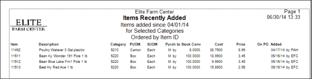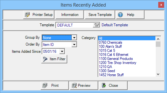 Track recently added inventory items by created an Items Recently Added report. This report includes recently added items with purchase information tracking who and when the item was added.