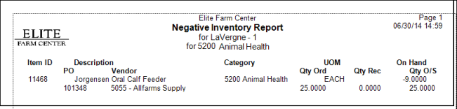 Negative Inventory Report