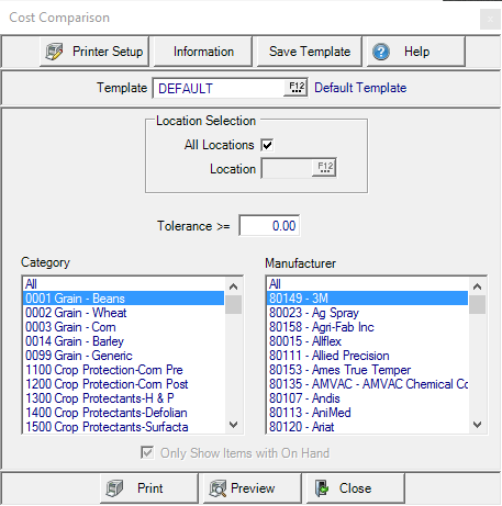 For Manufacturer select All, one or multiple Manufacturer's using Windows tagging.