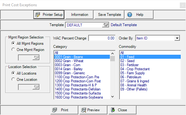 WAC Percent Change- Enter a Weighted Average Cost percent change for the report.