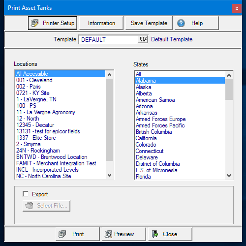 List Asset Tanks by Site or state.