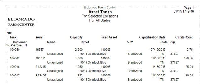 Tank ID and Serial Number identify the Asset tanks.