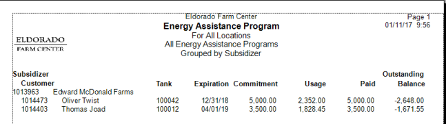 The Subsidizer column displays the Customer ID and Name of who is providing Energy Assistance, on the O&E Customer account.