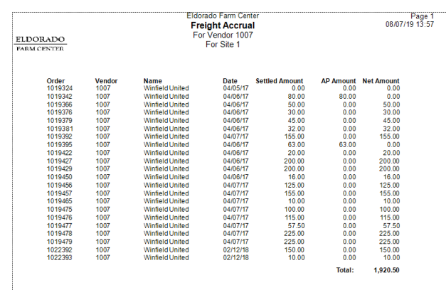 Use the Freight Accrual report to view outstanding Freight charges from Closed Orders.