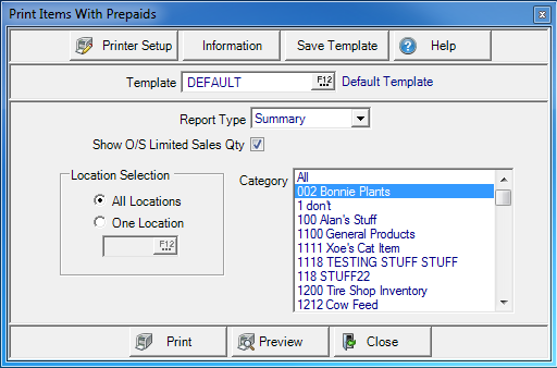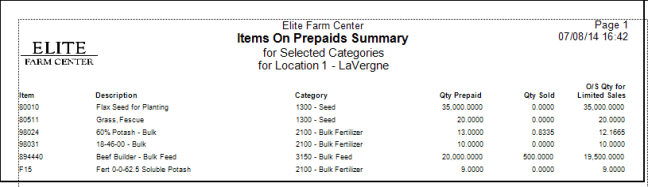 Use the checkbox Show O/S Limited Sales Qty to show outstanding Limited Sales Quantities on the report. This is the amount of an Item indicated on Prepaids less the Quantity sold.