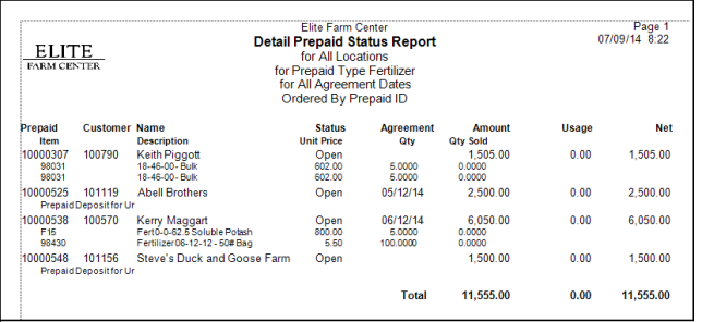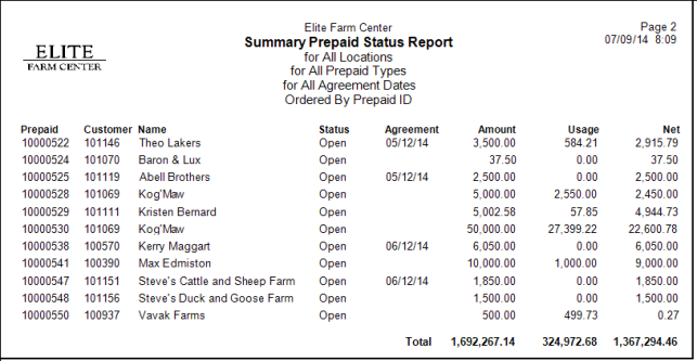 Create an Prepaid Status report to view balances and usage of all Open Prepaids. Select a Summary report for an overview of Prepaids or Detail which includes information on any Item included on Prepaids. Customize your report by selecting a customer filter, Location, or focus on one Prepaid Type.