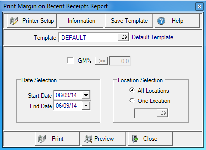 Select GM%Gross Margin percentage to focus the report on the Gross Margin Percentage entered. Use an operators to indicate if the Gross Margin Percent will be