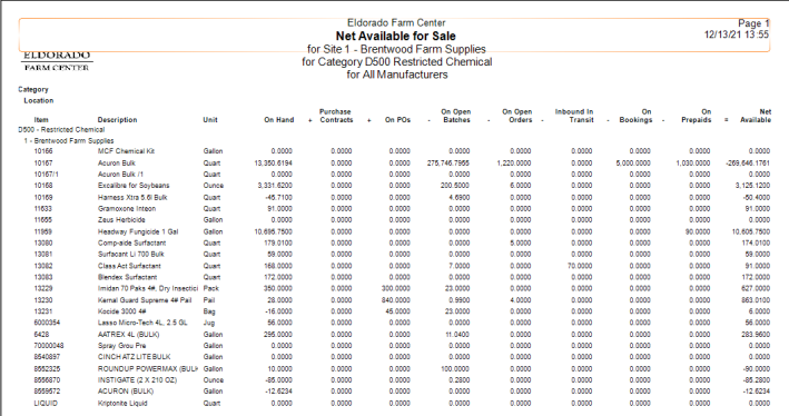 - columns have been added to the report for Purchase Contracts, Open Batches and Inbound In Transit.